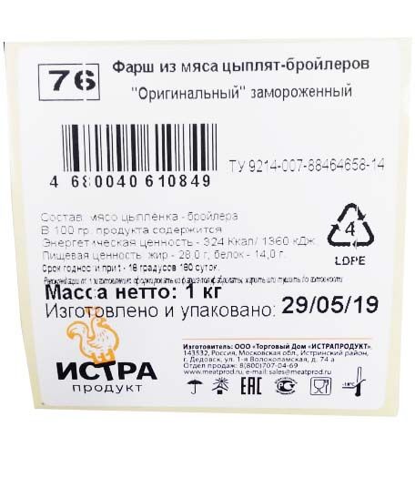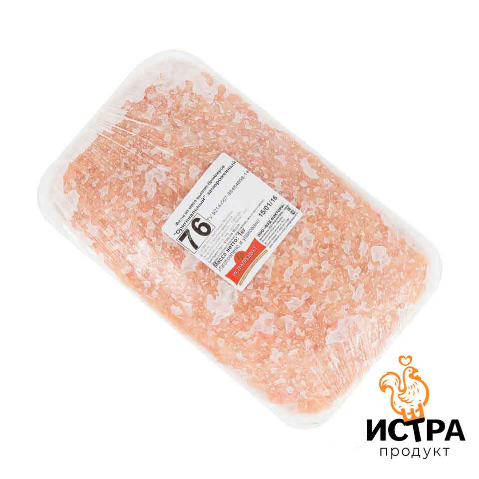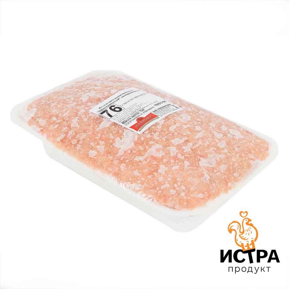 Компания «Истрапродукт» предлагает купить куриный фарш оптом из филе грудки в пятикилограммовых упаковках. Этот фарш можно считать "домашним" фаршем, так как сделан из чистого куриного филе. Поэтому цена для данного полуфабриката является акционной. Размер минимальной партии — 300 кг. Условия производства, хранения и доставки товара соответствуют ГОСТу.